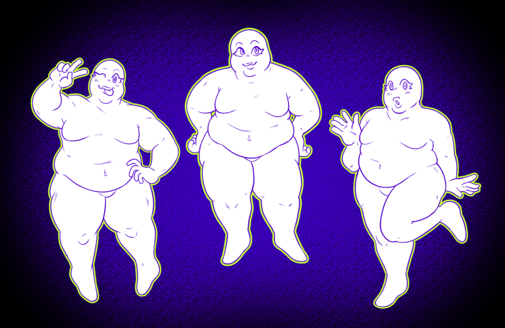 Three, cute detailed poses for bigger bodies. Edit them however you like!